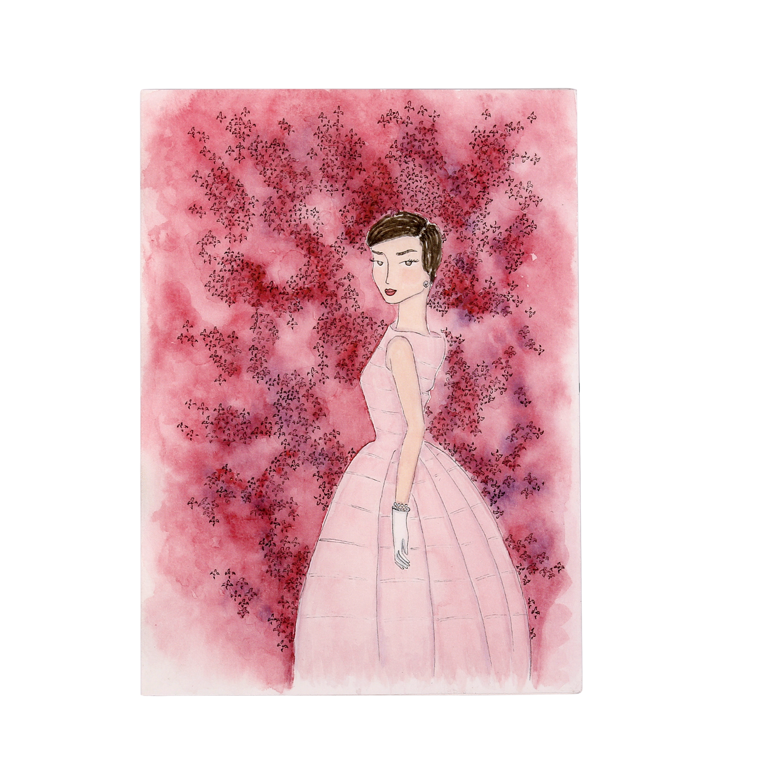 Each card is printed with exclusive watercolor illustrations of Audrey Hepburn featuring her most iconic fashion styles and movie roles
