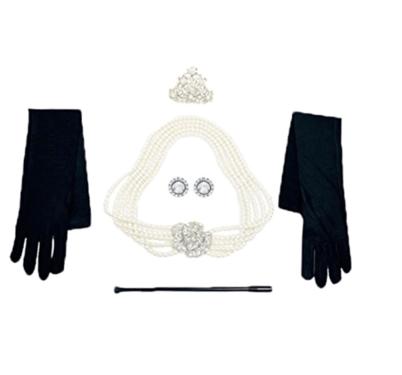 We developed this product, especially for the mini Audreys in the world who take after their mommies' stylish ways and are looking to transform into a mini Holly Golightly so you can have the most elegant mother/daughter costume. The set is made as mini version of the original accessories kit that completes our iconic Holly Golightly black dress costume. In addition to making everything smaller, we also made sure the clip-on earrings are extra padded for your little angel's ears' comfort to make it perfect Halloween outfit for kid.