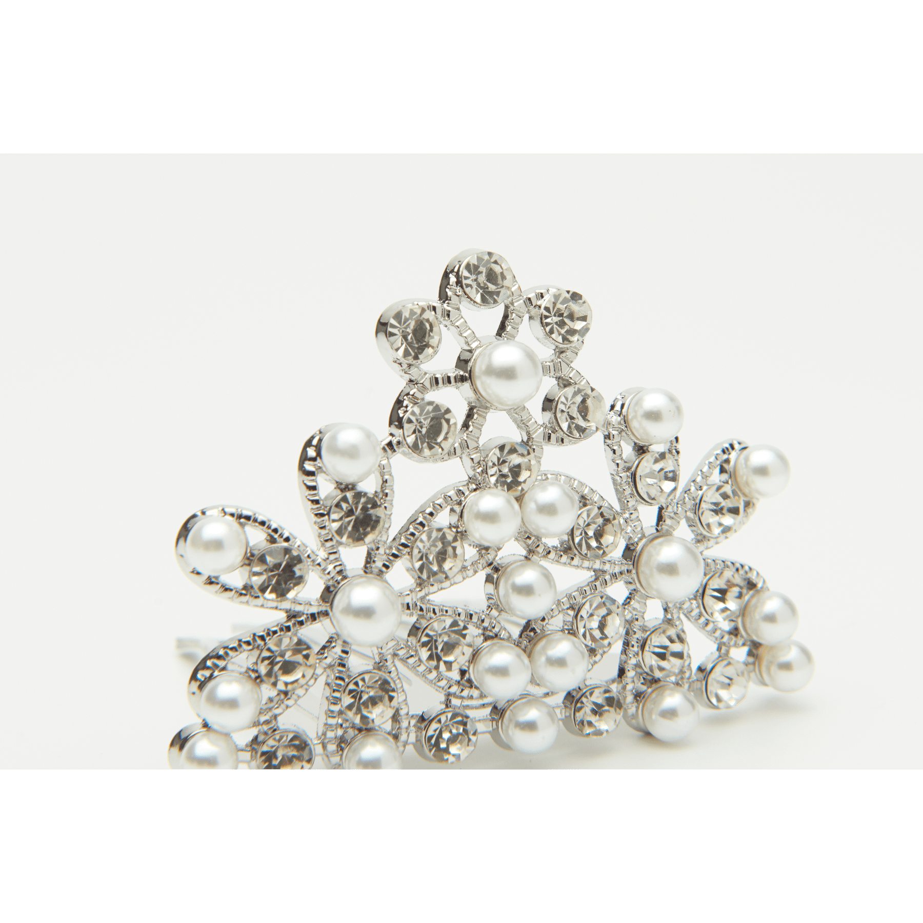 Add the style and grace of Audrey Hepburn as Holly Golightly to any getup with this fine pearl tiara inspired by the iconic black dress attire as featured in the classic film Breakfast at Tiffany's.